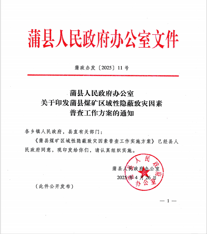 | 标 题: | 蒲县人民政府办公室关于印发蒲县煤矿区域性隐蔽致灾因素普查工作方案的通知 | 成文日期: | 2025-04-26 |